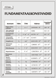 FÜÜSIKA SEINATABELID